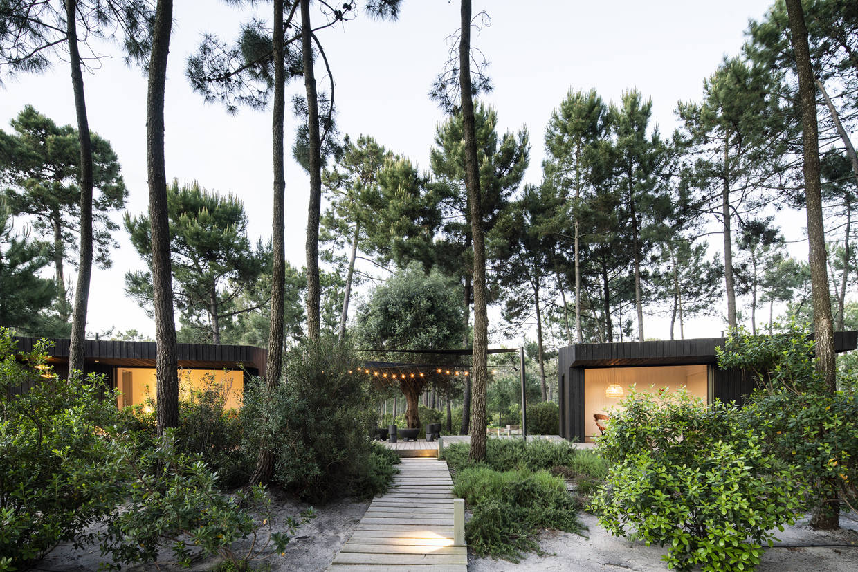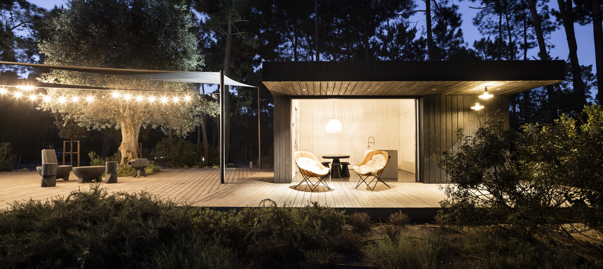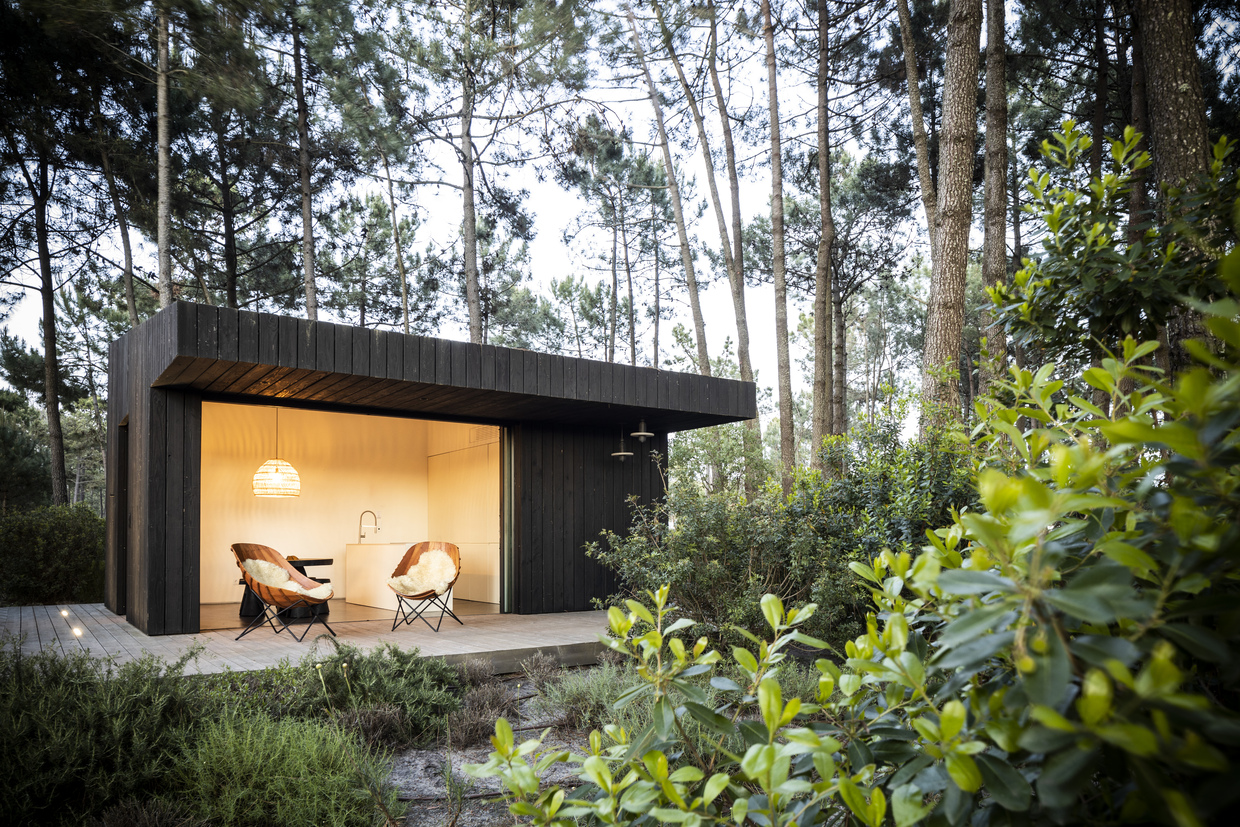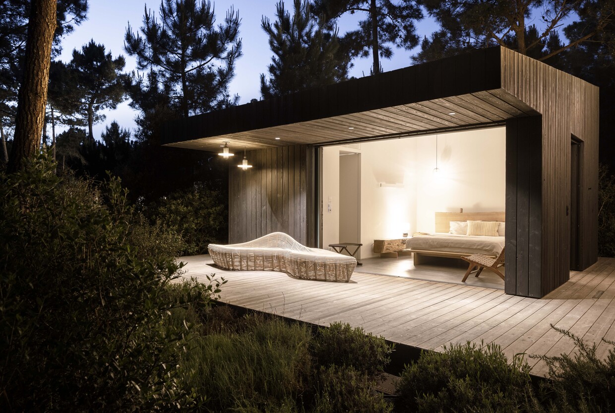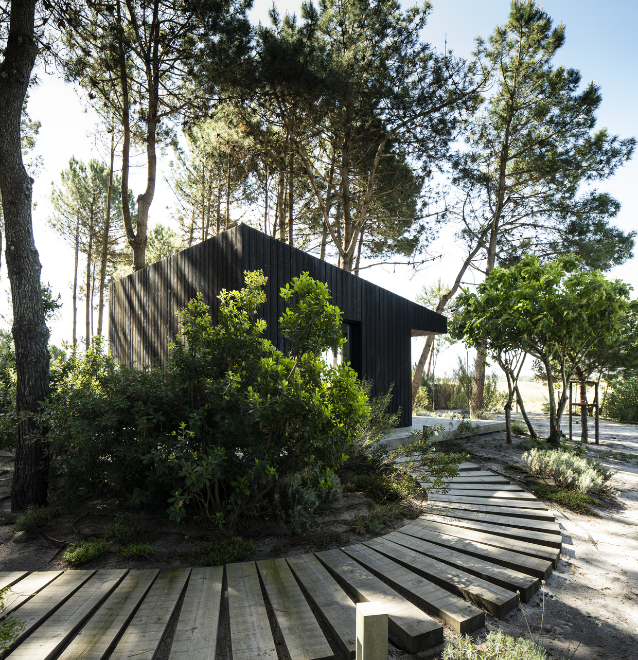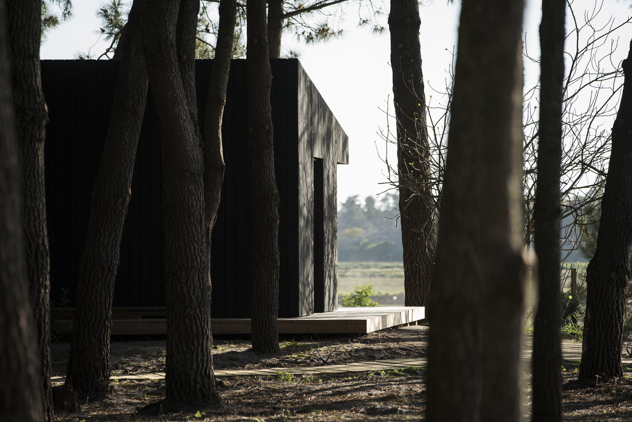 “I want this place to be my retreat, give me a bed and a bathtub and I’m happy”. That was our client’s brief for our latest project, Cabanas in Comporta, a small private residential project. The end result are four black cabanas that sit comfortably amidst the wild pine trees, inviting you to breathe, relax, and soak in the natural beauty around.