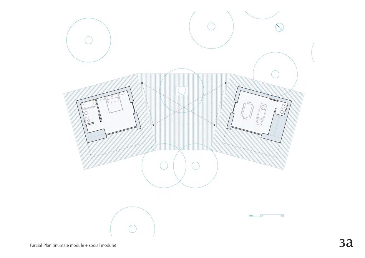 Once the summer temperatures arrive, the mosquitoes aren’t far behind, so designing a solution to beat the heat and these tiny little creatures which are well known in the area were a must. To stop mosquitoes wandering in and out of the cabanas whilst still receiving the external breeze, we integrated an independent thick net-like translucent blind placed in front of every sliding glass panel. This gave the owner varying layers of protection and privacy while still allowing for a cool breeze. To reduce the heat sensation, we extended the roof to create an additional shading area and hung a solar shading system connecting both cabanas in the same net-like fabric as the blinds. We opted for a dark cement flooring in order to take advantage of its thermal mass properties, as well as placed photo-voltaic panels and heat pumps to be used as an alternative energy source to heat or cool the cabanas. We collaborated with Mima Housing, a pre-fabricated expert architectural studio, who helped us with the execution of the project.